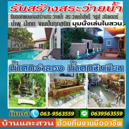 สร้างสระว่ายน้ำ สร้างมุมพักผ่อนนอกบ้าน รับสร้างและซ่อมแซมสระว่ายน้ำ รับสร้างบ่อน้ำพุ ม่านน้ำตก สวนน้ำตก